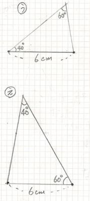 4cmと6cmの 2つの 辺 そして40°の 角 を もつ 三角形です