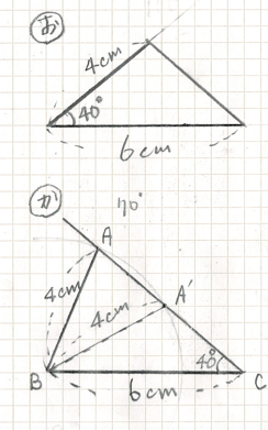 2つの角度が 1つの辺の両端の角でないときは 三角形は 2つできてしまい